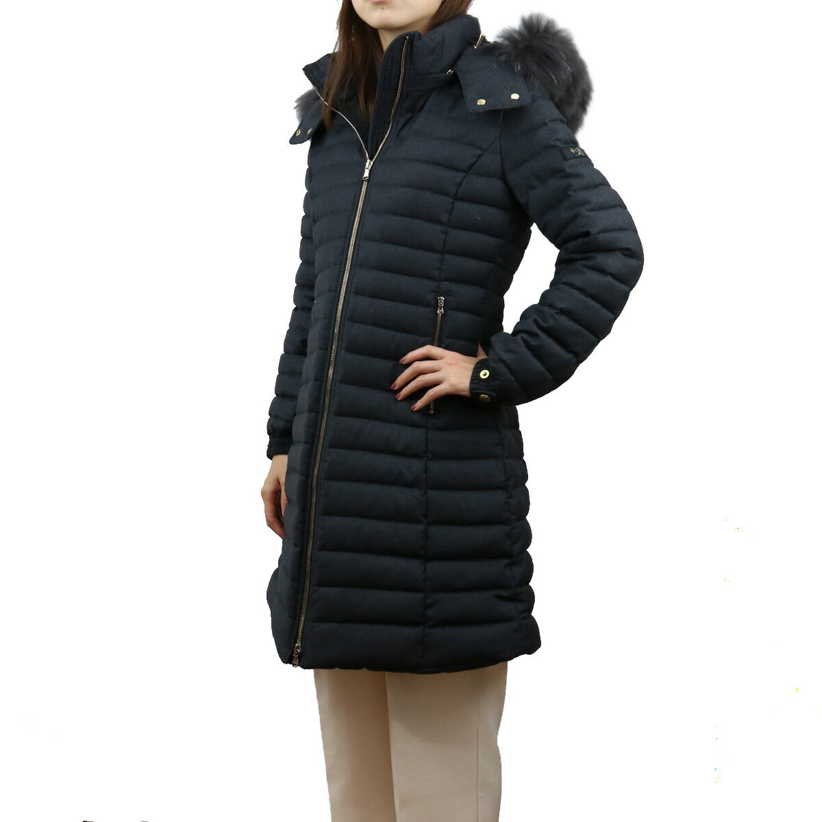 ダウンコート レディース グースダウン95% ラクーンファー45mm ファーブラック マディソン ヒップ丈ダウンコート ネイビー アミアンハウス ダウンジャケット 暖かい 人気 軽い おしゃれ long down coat ladies extra large size water resist high quality goose down