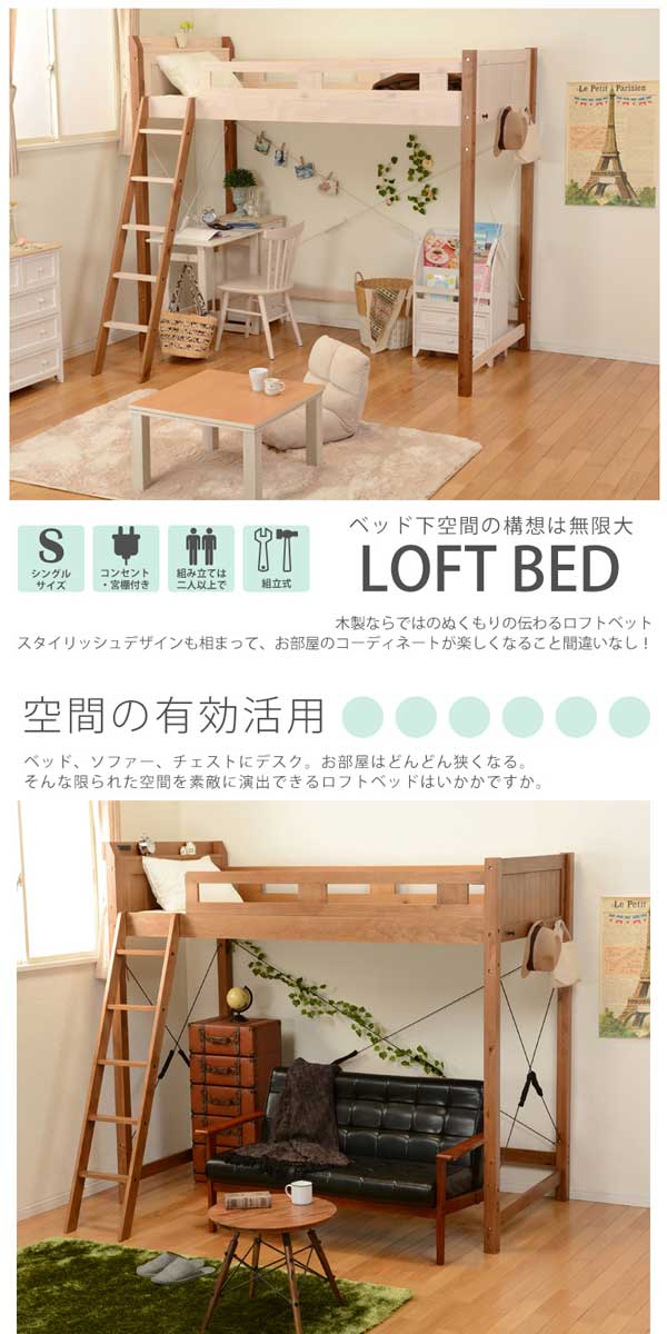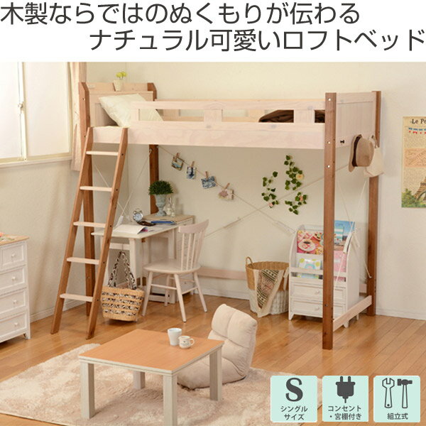 ロフトベッド ベッドフレーム シングルベッド 階段付 ハンガー付 コンセント付 木製 シングル 天然木 パイン 子供部屋 一人暮らし すのこ 北欧 天然木 パイン 大人 シンプル ナチュラル 送料無料 格安 お手頃価格 楽天 通販