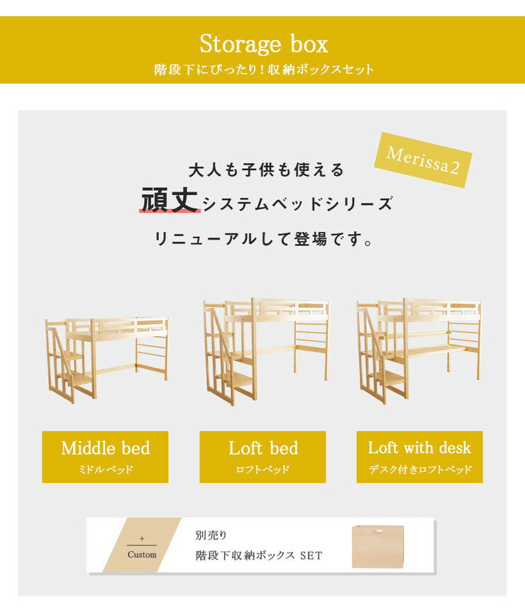 メリッサ2 階段下収納ボックス2個組 ミドル&ロフトベッド用 専用ボックス2コセット 収納ケース 木製 階段付きロフトベッド用(代引不可)【送料無料】