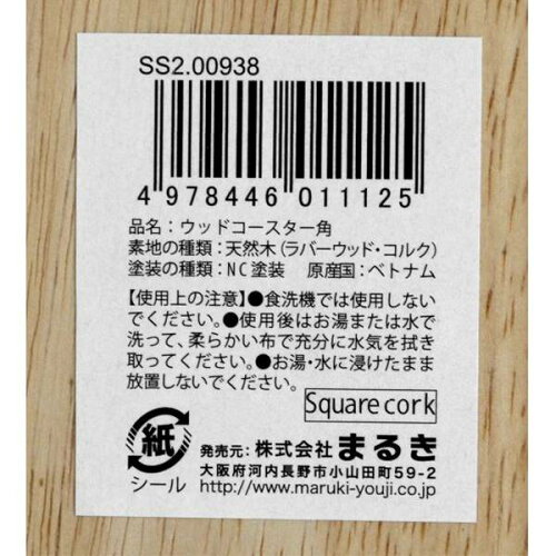 □サイズ(約)・92×92×9mm□素地の種類・天然木(ラバーウッド、コルク)□塗装の種類・NC塗装□品名・ウッドコースター 角□用途・コースター コップ敷き コップ受け□キーワード・こーすたー グラス マット 敷物 もくせい□メーカー名・株式会社まるき□カテゴリ・K110606□入数・1個